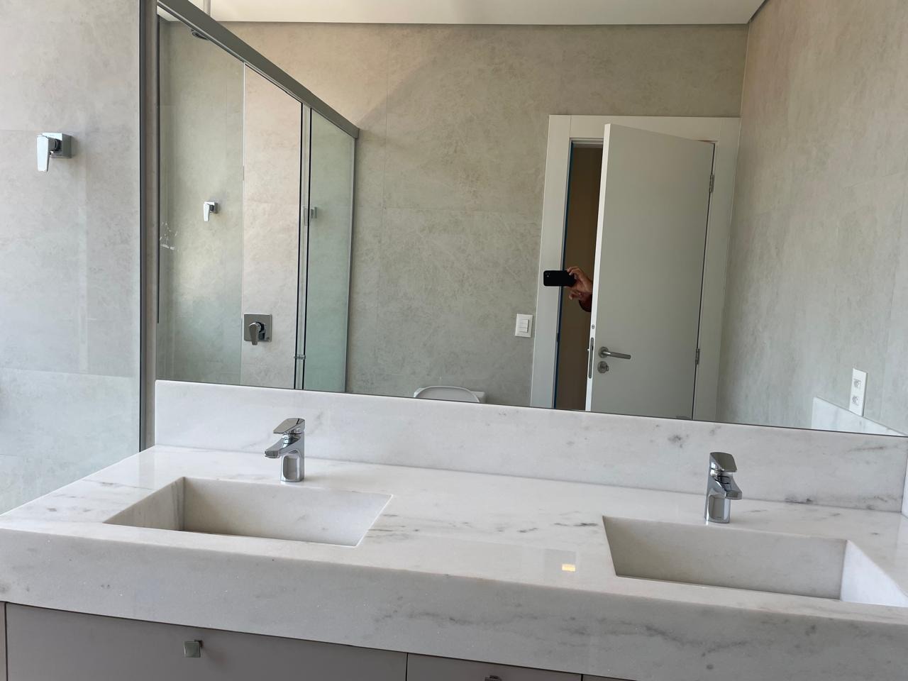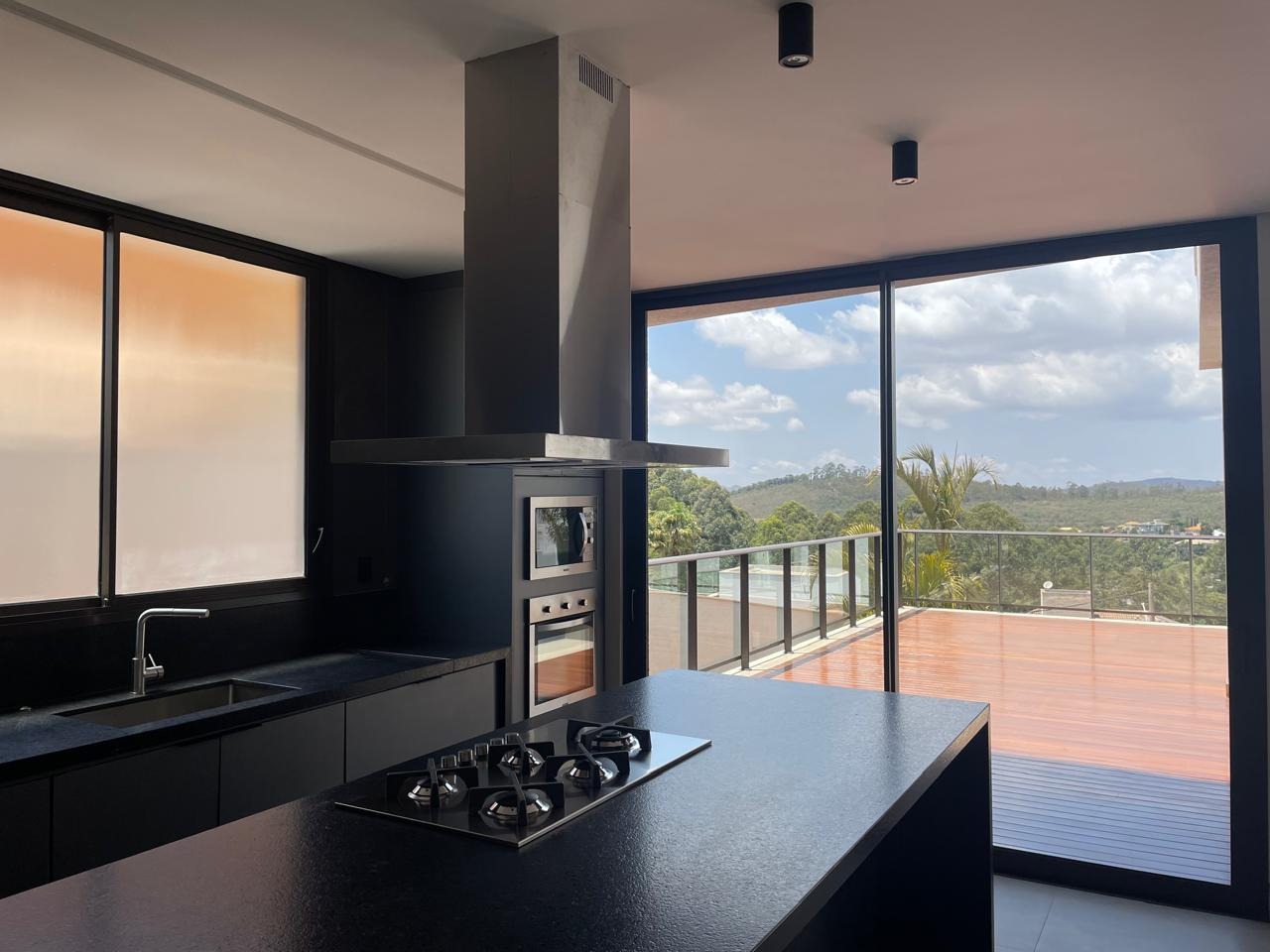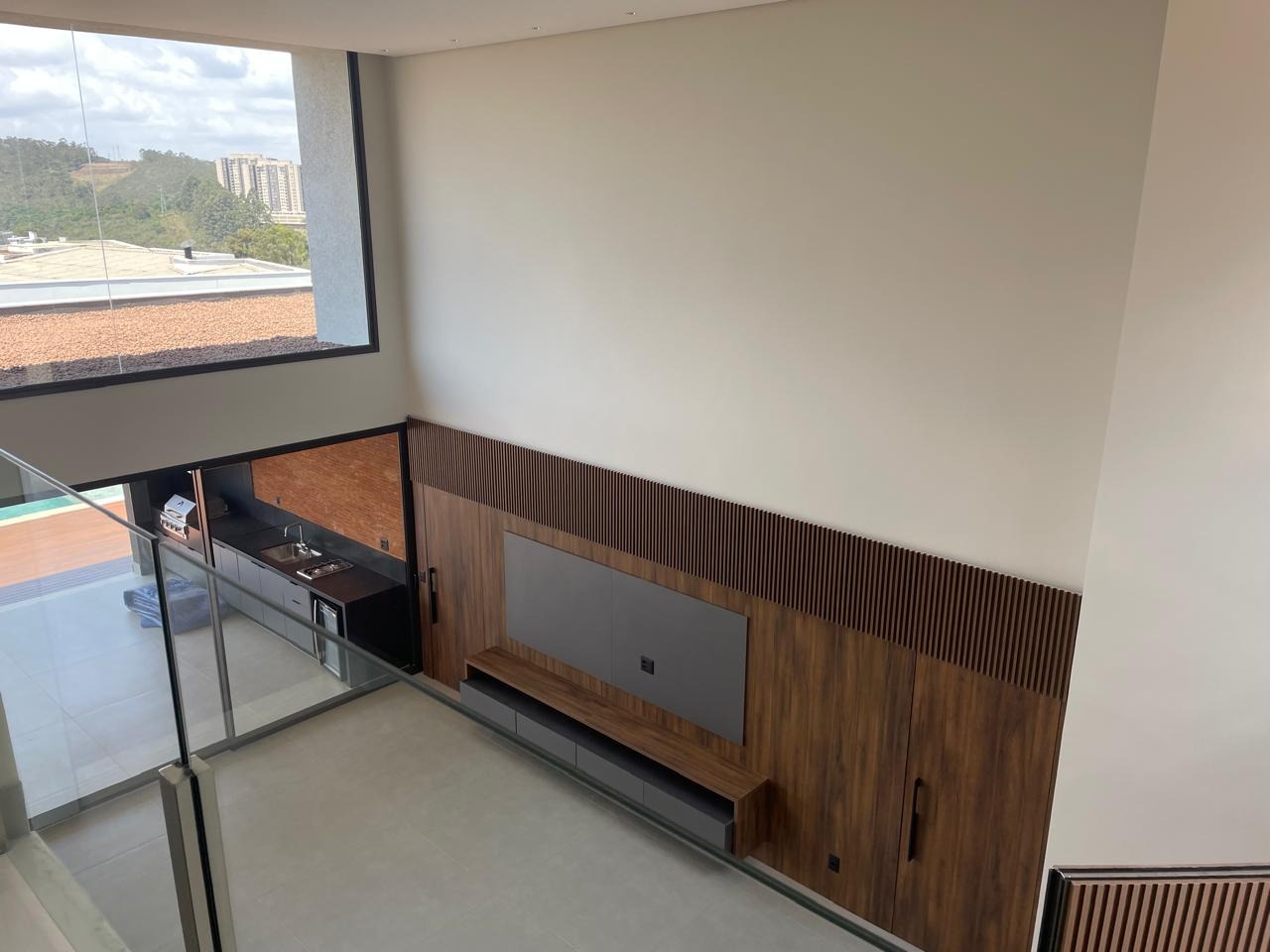 1° pavimento: sala para dois ambientes integrada à cozinha, equipada com armários planejados, cooktop, lava-louças, micro-ondas e forno. Ainda no piso, estão a lavanderia com marcenaria, despensa, lavabo, DCE e uma suíte com armários e varanda.