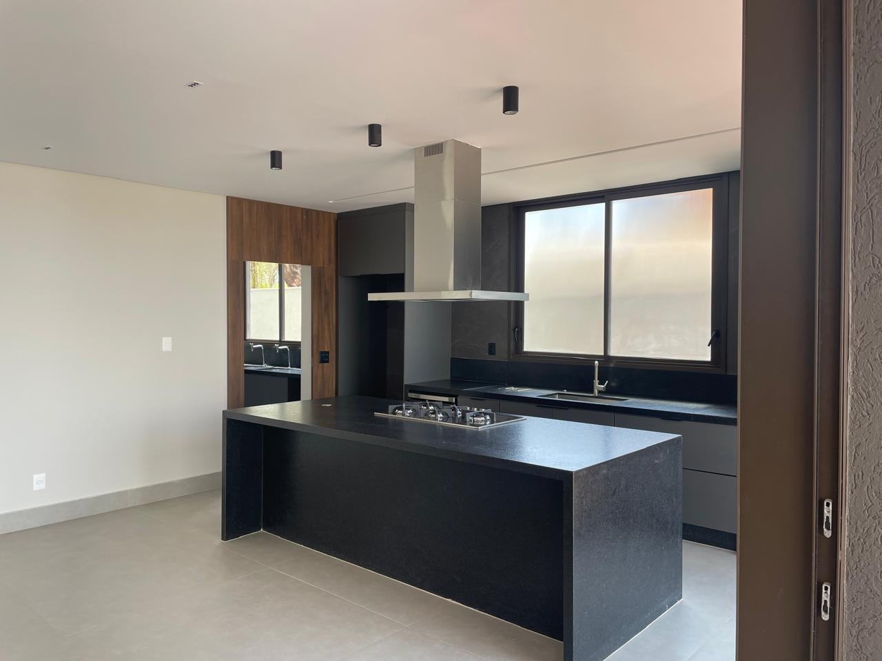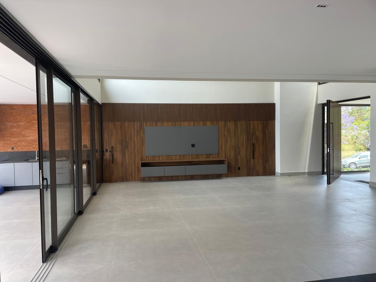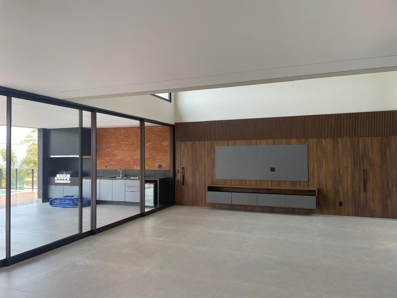 No subsolo, uma ampla sala com banheiro oferece flexibilidade para uso como academia, brinquedoteca ou sala de jogos.