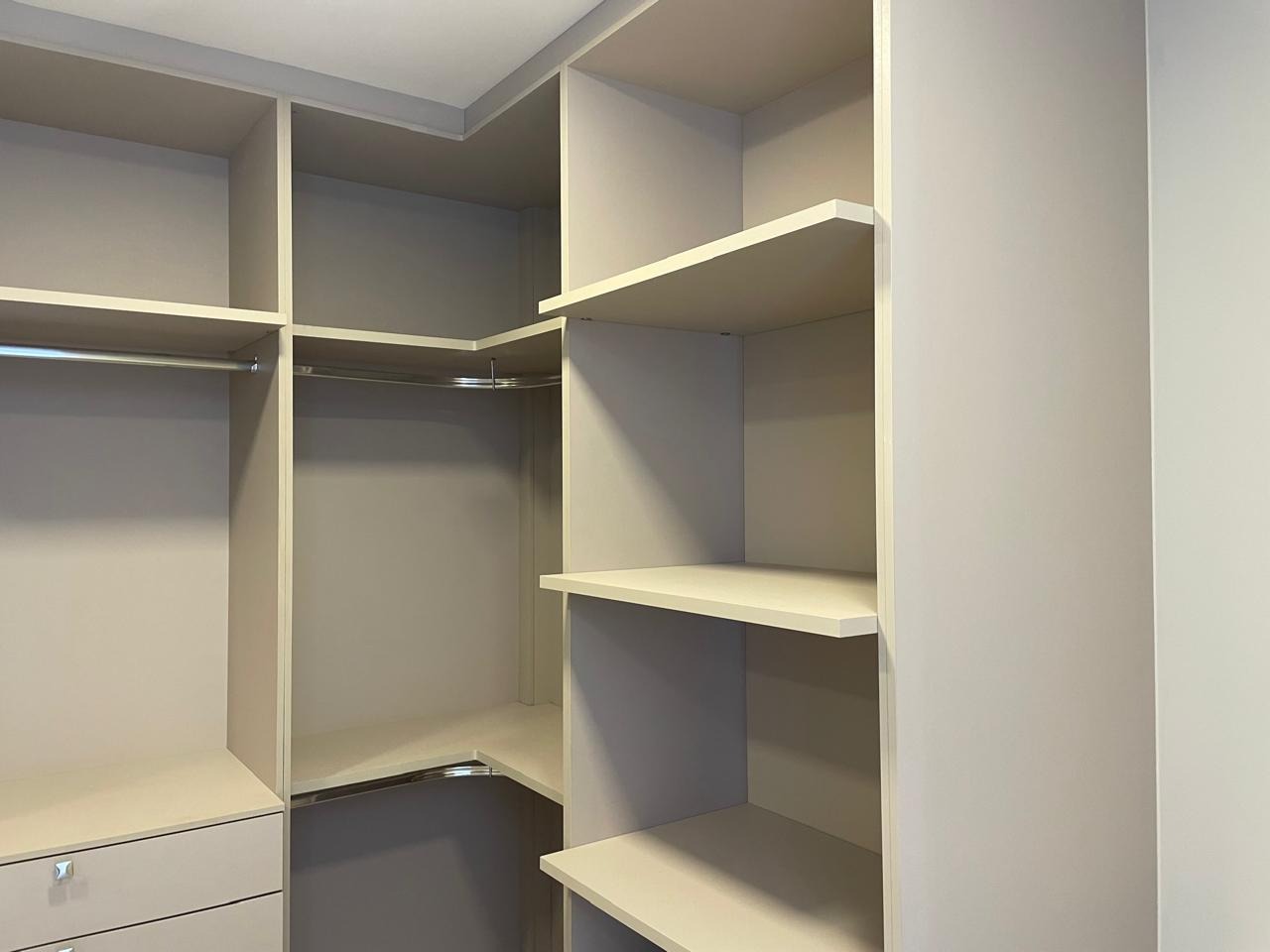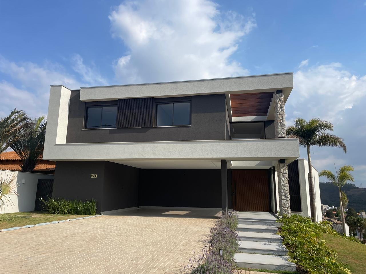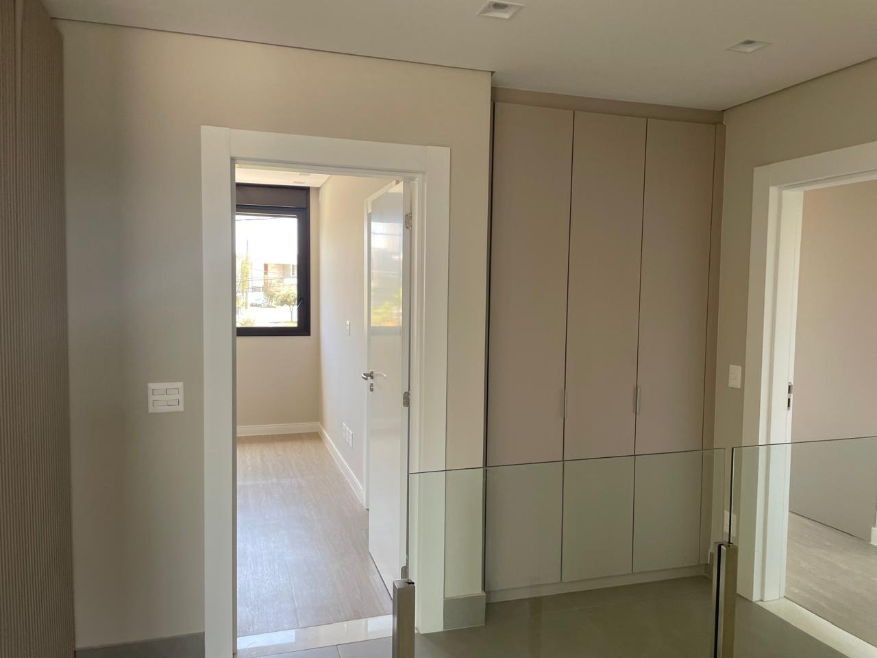 2° pavimento: rouparia e mais três suítes, sendo duas com armários planejados e uma suíte máster com closet e varanda com vista definitiva para as montanhas.